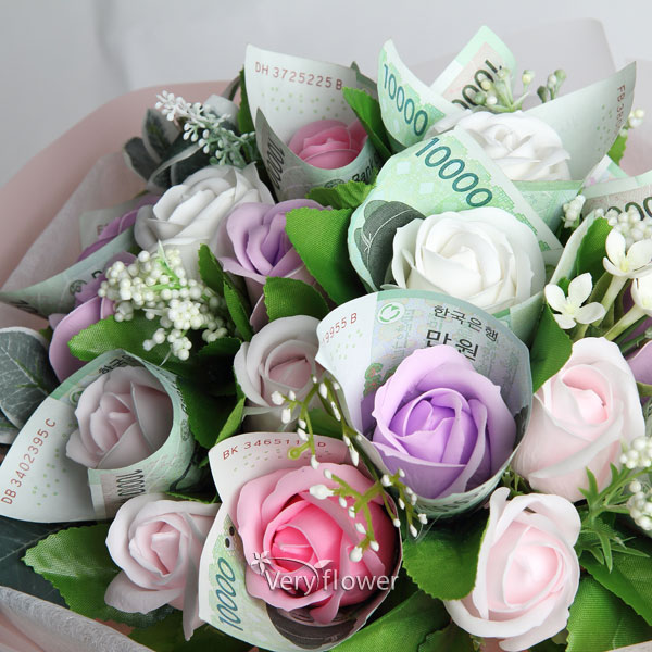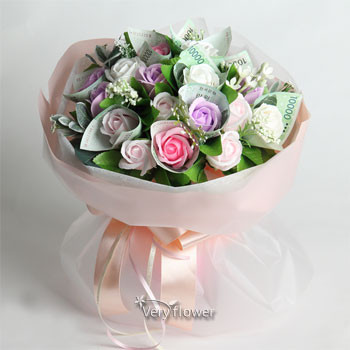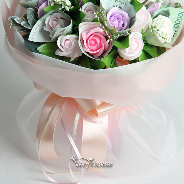 주요소재 : (핑크장미, 보라장미, 백장미) 비누꽃 + 조화꽃 등 약20송이
