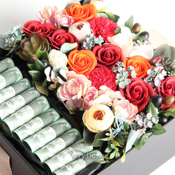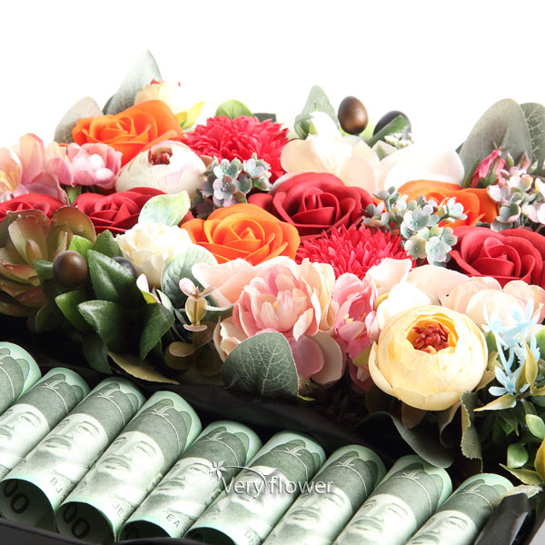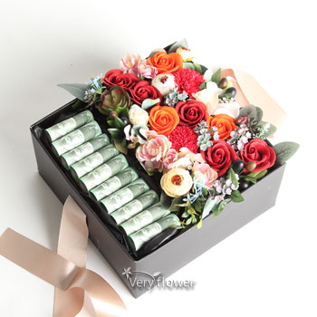 주요소재 : (레드장미, 주황장미, 카네이션) 비누꽃 + 조화꽃 등 약20송이